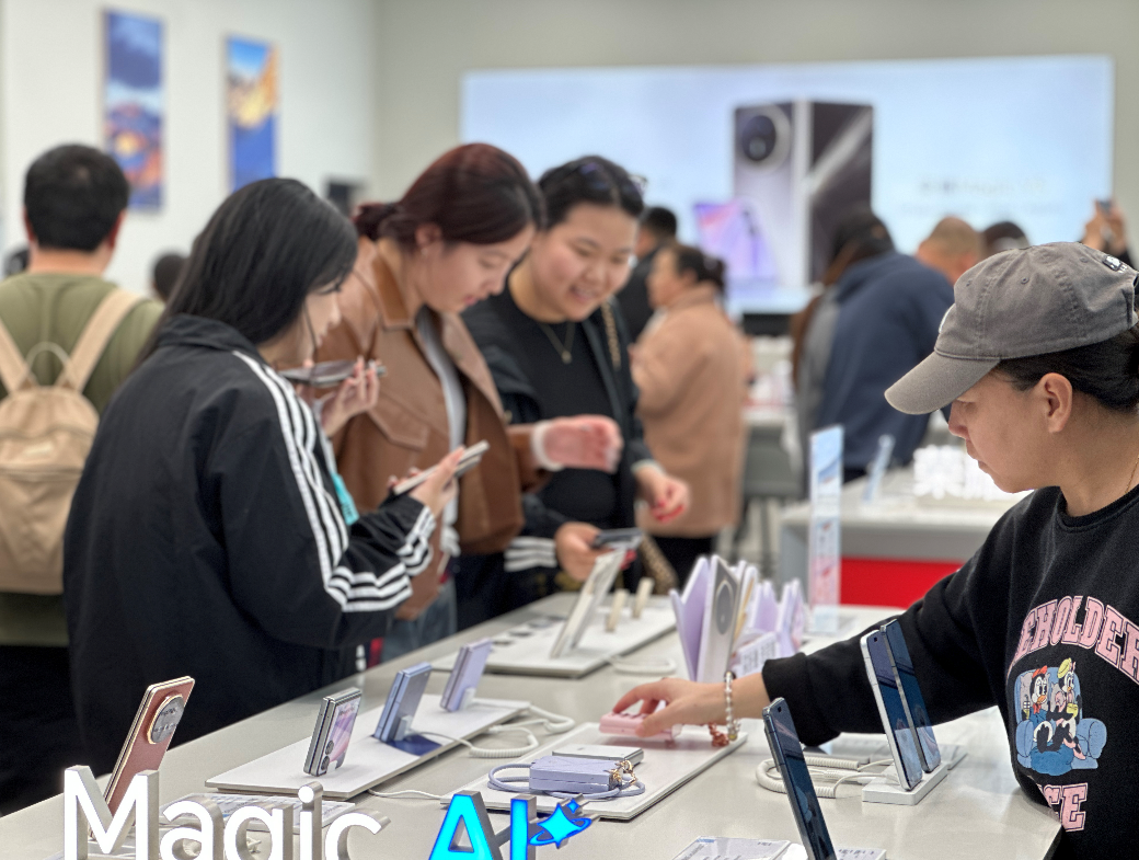 市民在店內(nèi)挑選手機(jī)產(chǎn)品