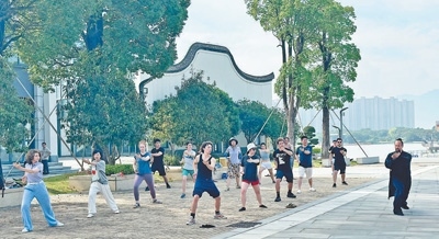 中美青年共同練習太極拳。以上圖片均為本報記者劉玲玲攝