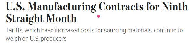 《華爾街日報》1日發(fā)表文章稱,美國供應管理協(xié)會(ISM)當天公布的調查報告顯示,11月美國制造業(yè)采購經理人指數(shù)(PMI)已低于50的榮枯分界線。美國制造業(yè)活動連續(xù)第九個月萎縮,而美國制造商認為這主要是因為美國政府的關稅政策。