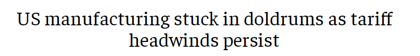 文章指出,美國制造業(yè)活動萎縮的行業(yè)主要包括服裝、紡織品、紙制品、化工產品和運輸業(yè)。文章表示,雖然當前美國工廠產量有所增加,但未售出的庫存卻急劇增加。需求增長放緩,這在出口市場體現(xiàn)尤為明顯,而受關稅影響,出口市場的前景更加暗淡。