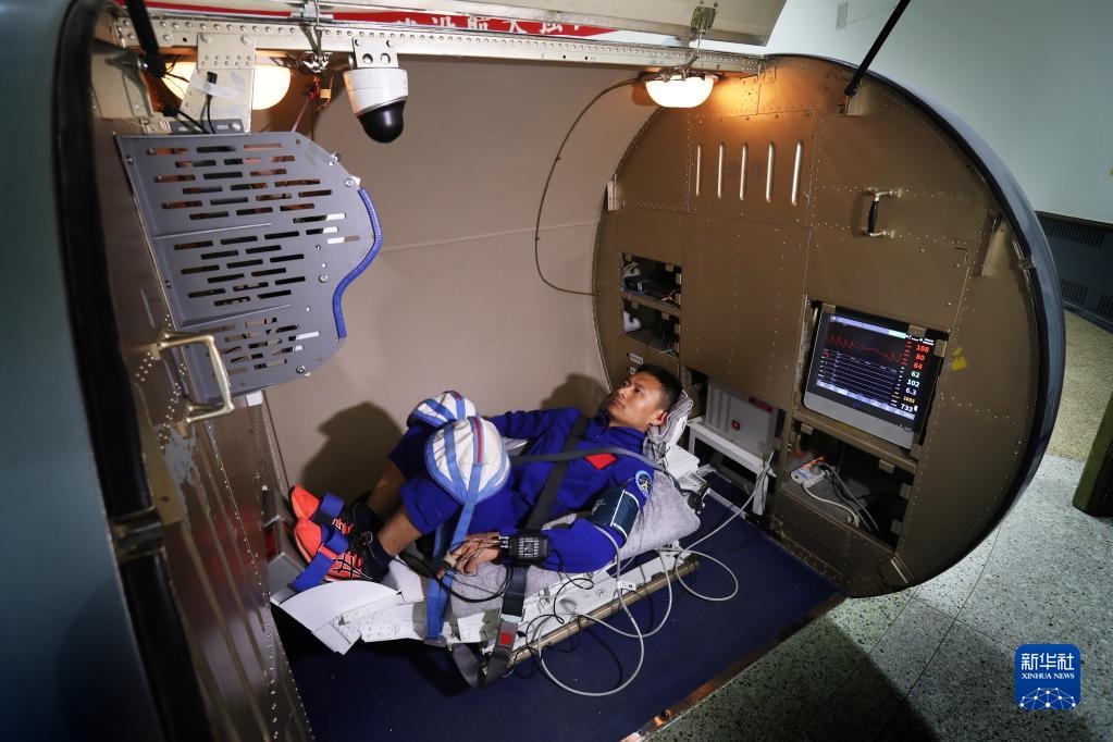 神舟十六號(hào)航天員朱楊柱在進(jìn)行超重耐力訓(xùn)練(2022年4月22日攝)。新華社發(fā)(王夏陽(yáng) 攝)