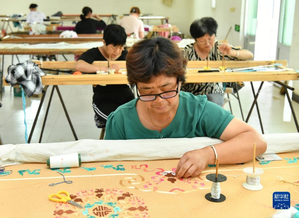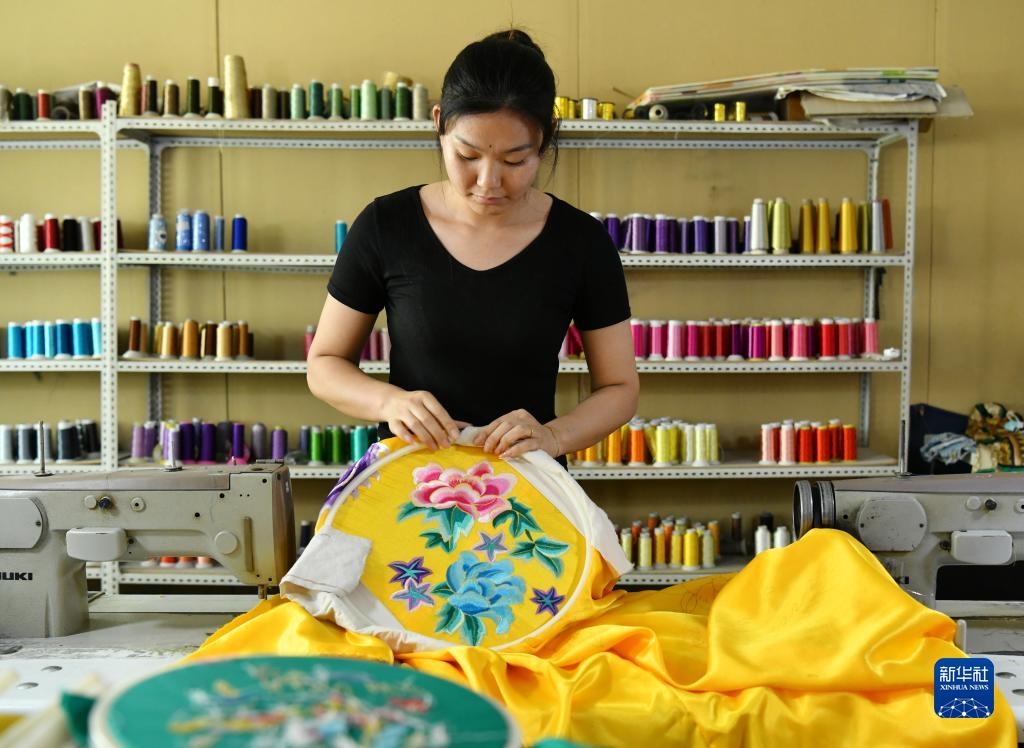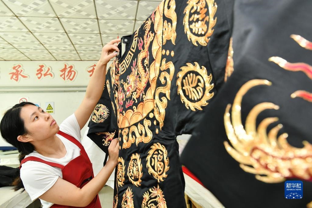 河北省肅寧縣邵莊鄉(xiāng)東高家口村的戲曲服裝服飾制作技藝至今已傳承百余年,2017年被列入滄州市市級非物質(zhì)文化遺產(chǎn)名錄。近年來,當?shù)卦谕七M產(chǎn)業(yè)富民的過程中,積極推進傳統(tǒng)技藝與現(xiàn)代工業(yè)生產(chǎn)有機融合,成立、引進服裝加工企業(yè),為100多名當?shù)亓羰貗D女提供就業(yè)崗位,在促進居民增收的同時,推動了傳統(tǒng)非遺的傳承。新華社記者 牟宇 攝