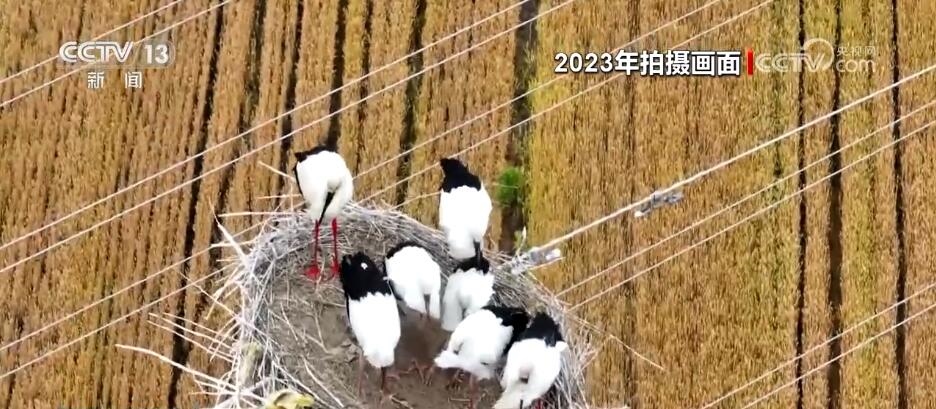 由于東方白鸛筑巢繁殖的位置位于輸電鐵塔頂端,為了給它們營造一個安全舒適的生活環(huán)境,當地還成立了愛鳥志愿服務隊,守護人類共同的朋友。