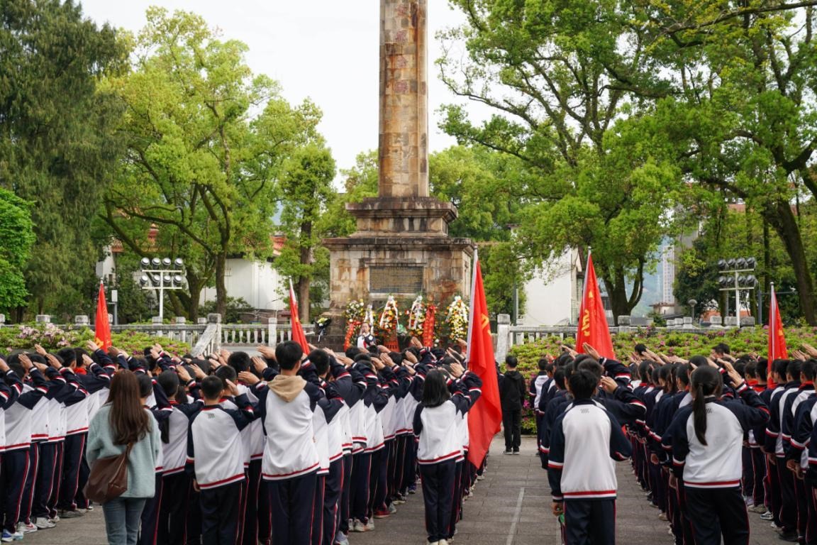 △4月1日,福建武夷山市少先隊員在列寧公園閩北革命烈士紀念碑前宣誓。