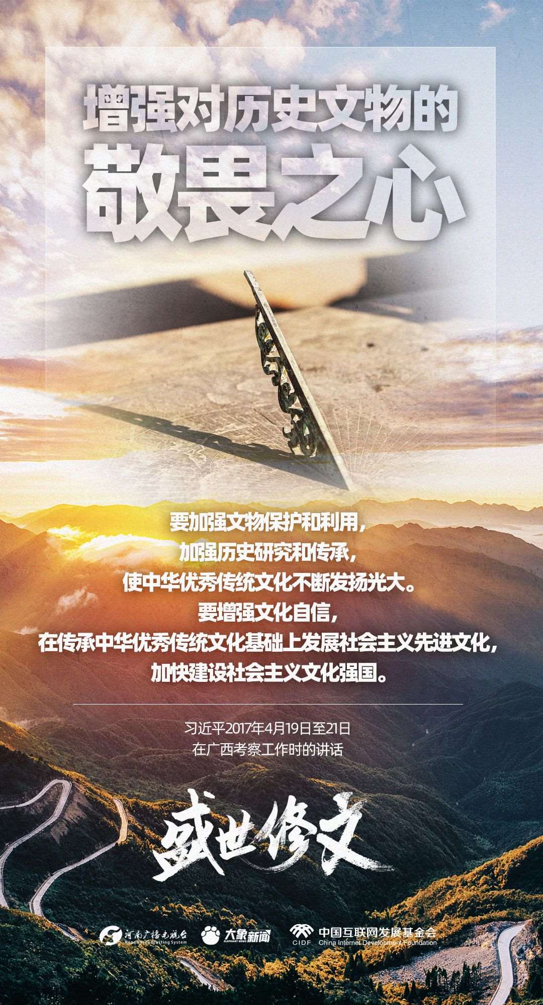 今天推出:習(xí)近平文化思想金句之《盛世修文丨增強(qiáng)對(duì)歷史文物的敬畏之心》