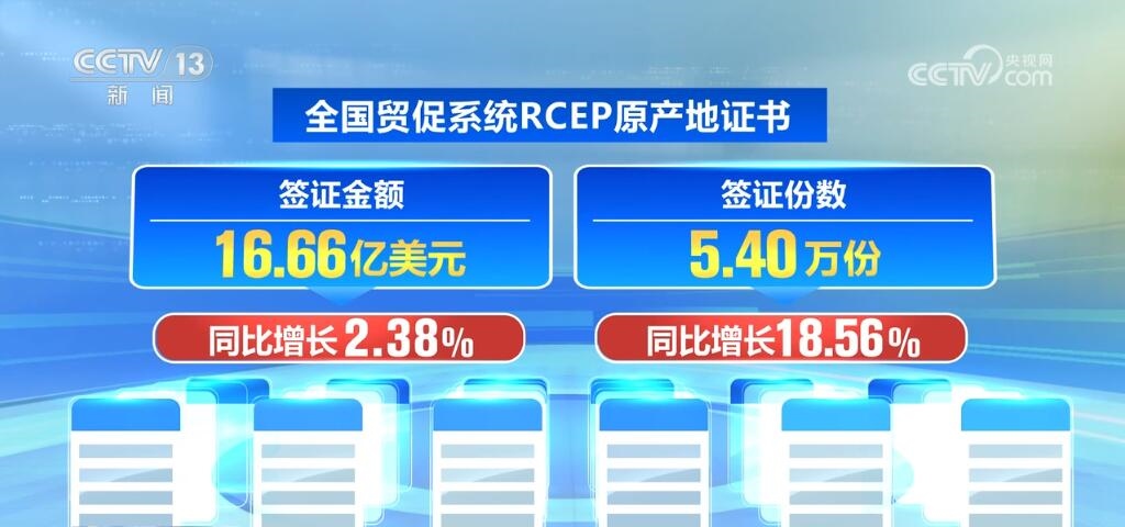 全國貿(mào)促系統(tǒng)RCEP原產(chǎn)地證書簽證金額共計(jì)16.66億美元,同比增長(zhǎng)2.38%;簽證份數(shù)共計(jì)5.40萬份,同比增長(zhǎng)18.56%。全國貿(mào)促系統(tǒng)RCEP原產(chǎn)地證書簽證金額和簽證量雙增長(zhǎng),表明RCEP帶來的貿(mào)易紅利持續(xù)釋放,外貿(mào)企業(yè)獲得實(shí)實(shí)在在的實(shí)惠。