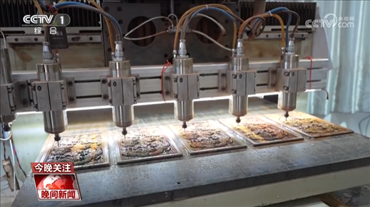 福建省天材古典工藝有限公司總經(jīng)理 黃海聲:這種首飾盒,一年整個(gè)鎮(zhèn)應(yīng)該向海內(nèi)外銷量超過幾十萬件。傳統(tǒng)的師傅如果純手工雕刻,至少要花一個(gè)多月的時(shí)間。我們現(xiàn)在通過數(shù)字化的賦能,師傅把樣品做出來之后,通過數(shù)字化軟件傳輸給我們的機(jī)器然后進(jìn)行雕刻,半天的時(shí)間就能夠生產(chǎn)出來。機(jī)器設(shè)備也不斷地去優(yōu)化,每刀下去的精度差不多頭發(fā)絲這么細(xì)。