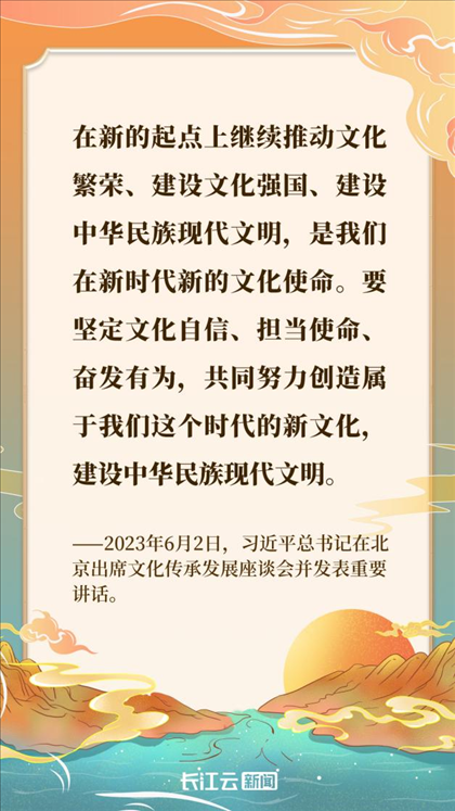 2023年6月2日,文化傳承發(fā)展座談會在北京召開,習近平總書記發(fā)表重要講話,從黨和國家事業(yè)發(fā)展全局戰(zhàn)略高度,對中華文化傳承發(fā)展的一系列重大理論和現(xiàn)實問題作了全面系統(tǒng)深入闡述,為在全面建設(shè)社會主義現(xiàn)代化國家新征程上推進文化傳承發(fā)展事業(yè)指明了前進方向、提供了根本遵循。