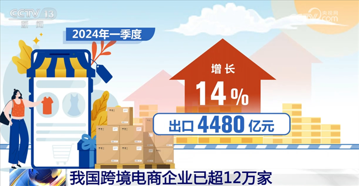 商務(wù)部有關(guān)負責(zé)人介紹,我國跨境電商整體規(guī)模從小到大、從大到優(yōu),成為我國外貿(mào)發(fā)展的有生力量。2024年一季度,跨境電商進出口5776億元,增長9.6%,其中出口4480億元,增長14%。目前,我國跨境電商企業(yè)數(shù)量已超12萬家,跨境電商企業(yè)累計在海外注冊商標超3萬個。過去5年,我國跨境電商貿(mào)易規(guī)模增長超過10倍。