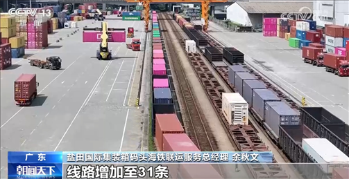鹽田國際集裝箱碼頭海鐵聯(lián)運服務(wù)總經(jīng)理余秋文介紹:“截至今年4月份,我們共開通了14個海鐵聯(lián)運內(nèi)陸港,線路增加至31條,覆蓋了大灣區(qū)、華中、西南等重要的經(jīng)濟區(qū)域。”