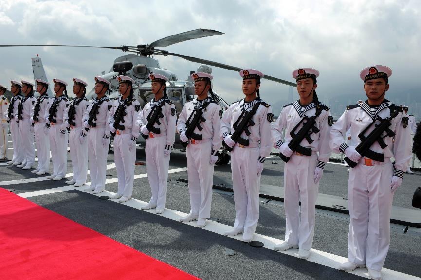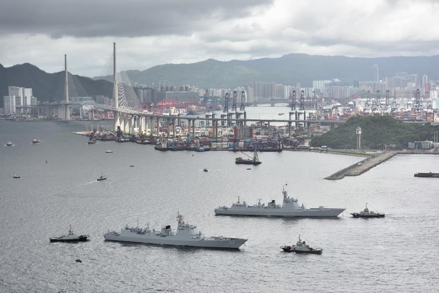 2017年7月7日, 正在執(zhí)行跨區(qū)機動訓(xùn)練任務(wù)的中國人民解放軍海軍航母編隊抵達香港,參加香港回歸祖國暨中國人民解放軍進駐香港20周年慶?;顒樱艿较愀厶貐^(qū)政府和民眾熱烈歡迎。