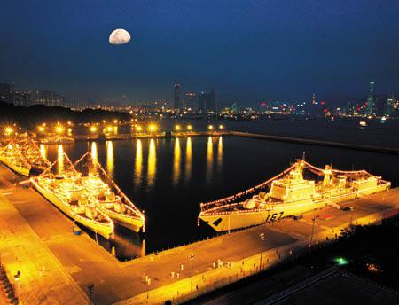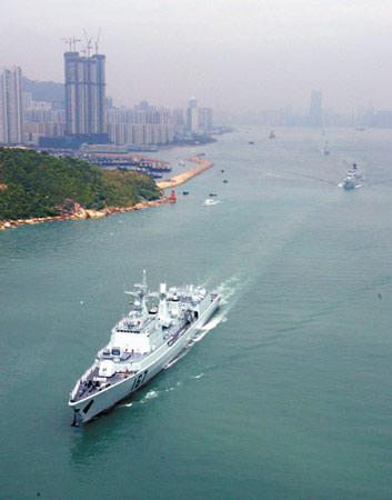 為紀念海軍成立55周年,經(jīng)中央人民政府批準,由8艘艦艇、2架艦載機組成的艦艇編隊,于2004年4月30日至5月5日??肯愀郯捍捃姼?,向香港同胞展示人民海軍現(xiàn)代化建設(shè)的雄姿風(fēng)采。
