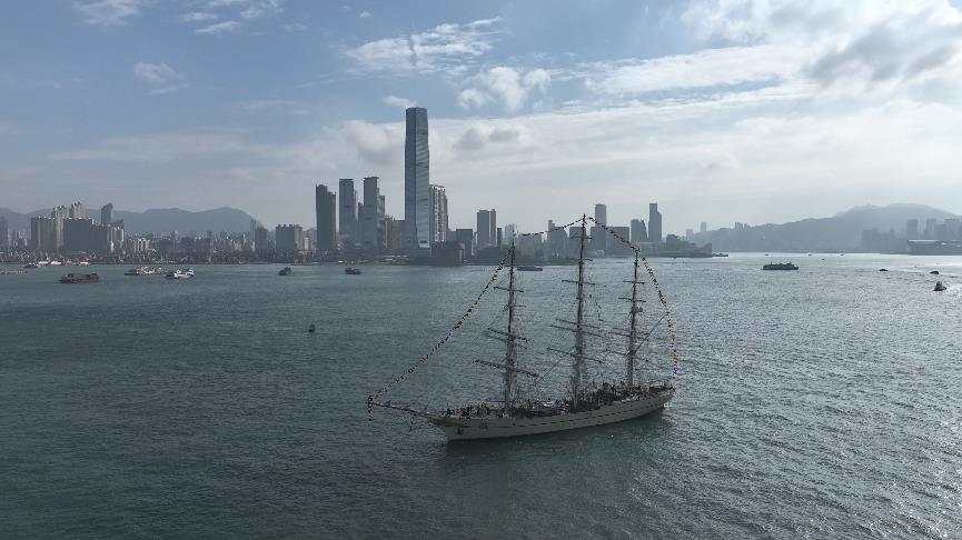 2024年11月18日,中國海軍首艘風(fēng)帆訓(xùn)練艦“破浪”號抵達香港。新華社發(fā)(江碩 攝)