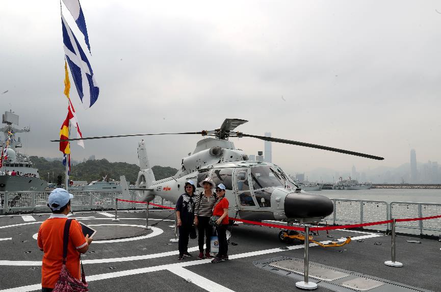 由導(dǎo)彈驅(qū)逐艦海口艦、導(dǎo)彈護衛(wèi)艦黃山艦組成的中國人民解放軍海軍艦艇編隊,在執(zhí)行完海軍成立70周年閱艦任務(wù)返航歸建途中,于2019年4月30日靠泊香港,受到香港特區(qū)政府和市民熱烈歡迎。
