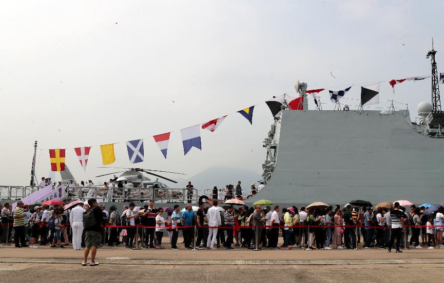 數(shù)千名香港市民來到昂船洲碼頭,參觀中國人民解放軍海軍“深圳”號導(dǎo)彈驅(qū)逐艦。新華社記者薛東梅攝