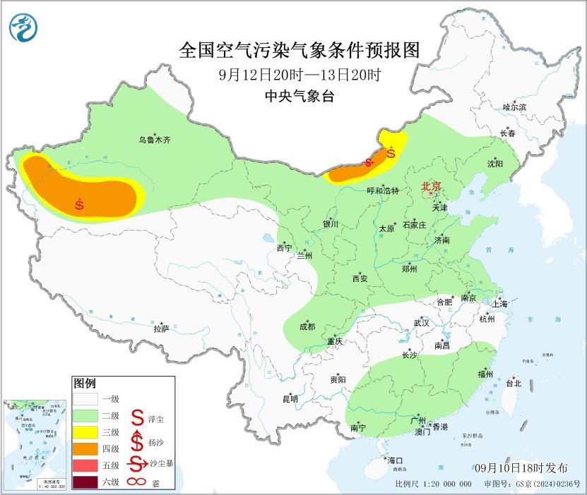 中新網(wǎng)9月10日電 據(jù)中央氣象臺網(wǎng)站消息,未來一周,全國大部地區(qū)大氣擴(kuò)散條件較好,無明顯霾天氣。13日內(nèi)蒙古中部偏北部分地區(qū)有沙塵天氣。