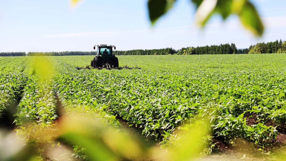 在北大荒集團(tuán)黑龍江紅星農(nóng)場第一管理區(qū)有機(jī)大豆田里,搭載北斗導(dǎo)航系統(tǒng)的大馬力機(jī)車開展有機(jī)大豆二次中耕作業(yè)(2025年7月7日攝)。新華社發(fā)(侯越攝)