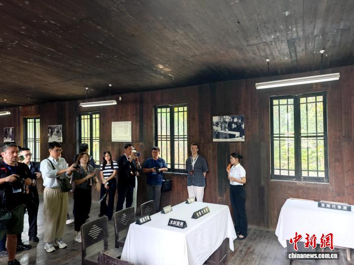 7月26日,媒體記者參觀中國戰(zhàn)區(qū)總受降典禮會場舊址。中新社記者 鄧霞 攝