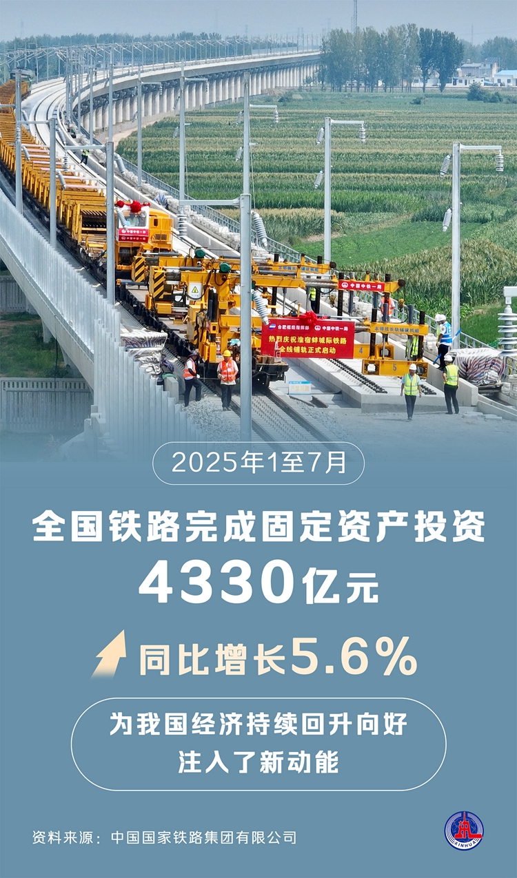 新華社北京8月16日電 題:全國(guó)鐵路建設(shè)再推進(jìn) 前7月完成固定資產(chǎn)投資4330億元