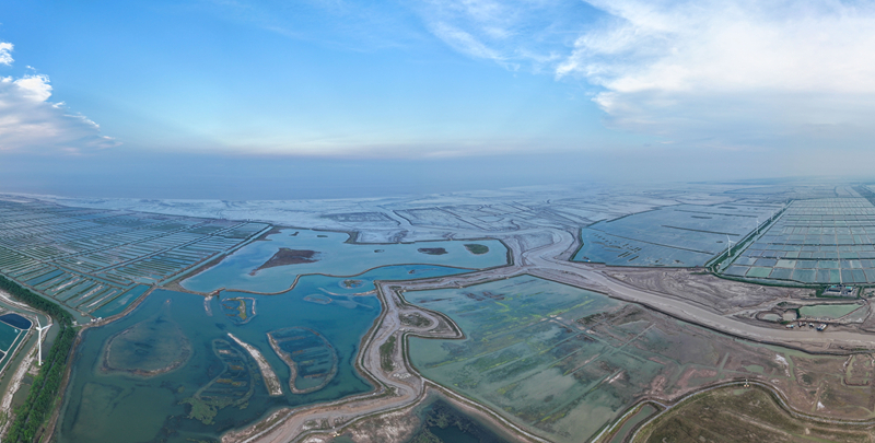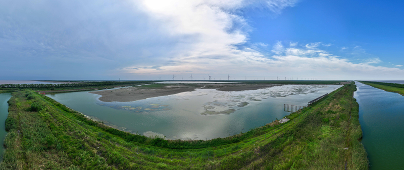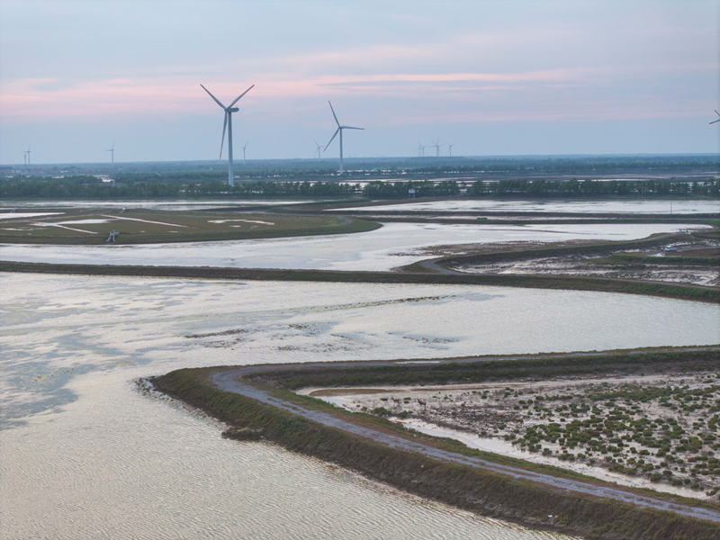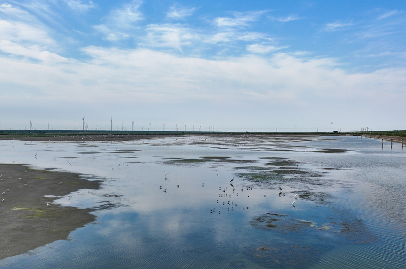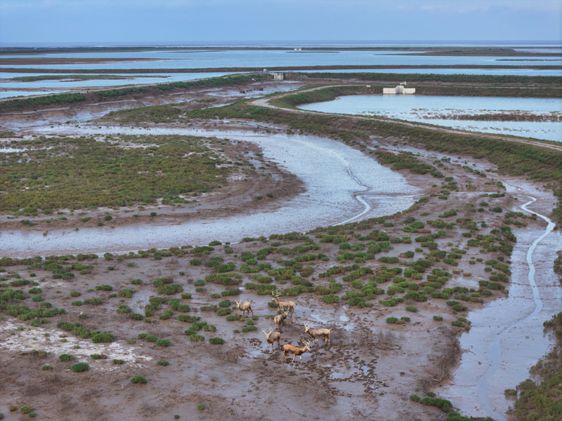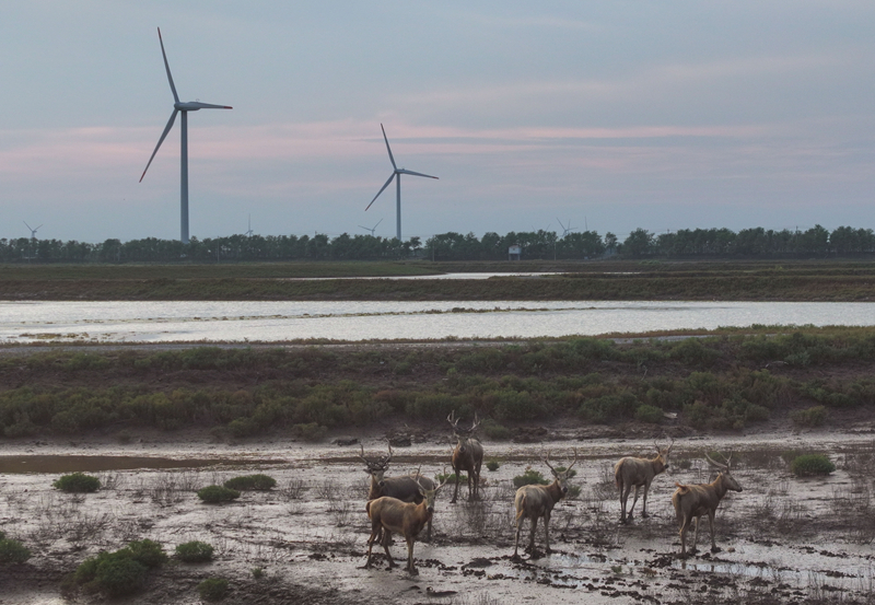 江蘇省鹽城市東臺市條子泥濕地區(qū)域總面積129萬畝。2019年,作為中國黃(渤)海候鳥棲息地(第一期)重要組成部分被列入世界遺產名錄。近年來,條子泥濕地秉承“基于自然的解決方案”理念,開展了川水灣海岸帶生態(tài)保護項目,并在東臺海堤西側專門辟出720畝魚塘,打造了國內第一塊固定高潮位棲息地。生態(tài)保護修復工程的實施使條子泥一些珍稀物種種群數量屢創(chuàng)新高,大批的水鳥、成群的麋鹿等野生動物在此“落戶”,濕地修復初顯成效。