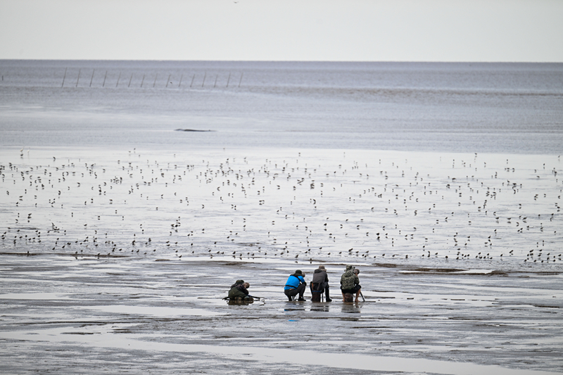 8月25日,攝影愛好者、鳥類保護者在東臺條子泥濕地拍攝觀測鳥類。