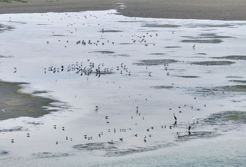 8月25日,群鳥棲息在川水灣。