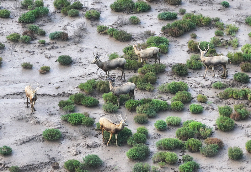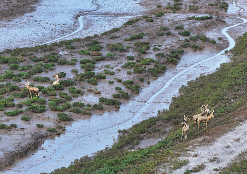 8月25日,野生麋鹿棲息在川水灣(無人機照片)。