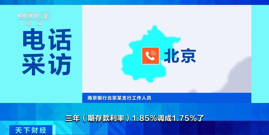 江蘇銀行北京某支行工作人員:三年(期存款利率)1.75%,之前三年(期存款利率)是1.85%,是上周三降的。