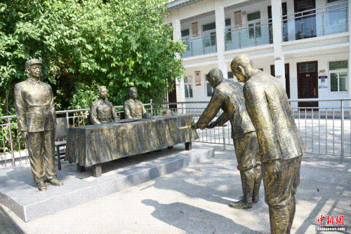 漯河市第二中學內復原日軍受降儀式現場雕像。王宇 攝