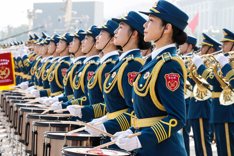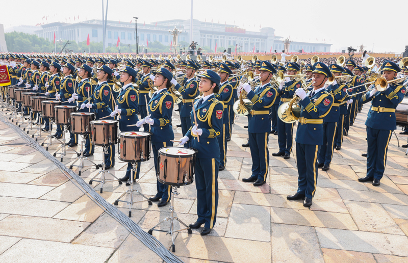 9月3日,紀(jì)念中國人民抗日戰(zhàn)爭暨世界反法西斯戰(zhàn)爭勝利80周年大會在北京天安門廣場隆重舉行。這是中國人民解放軍聯(lián)合軍樂團(tuán)在演奏。