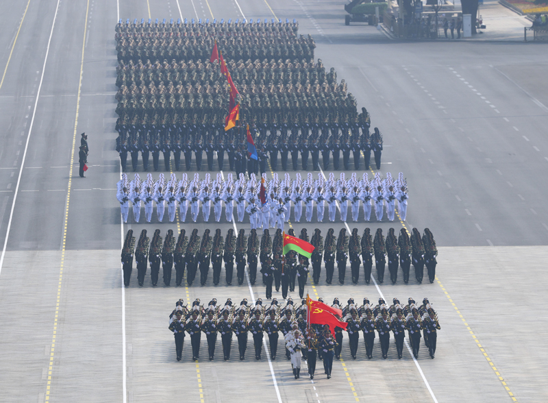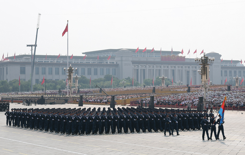 9月3日,紀(jì)念中國人民抗日戰(zhàn)爭暨世界反法西斯戰(zhàn)爭勝利80周年大會(huì)在北京隆重舉行。這是徒步方隊(duì)通過天安門廣場。