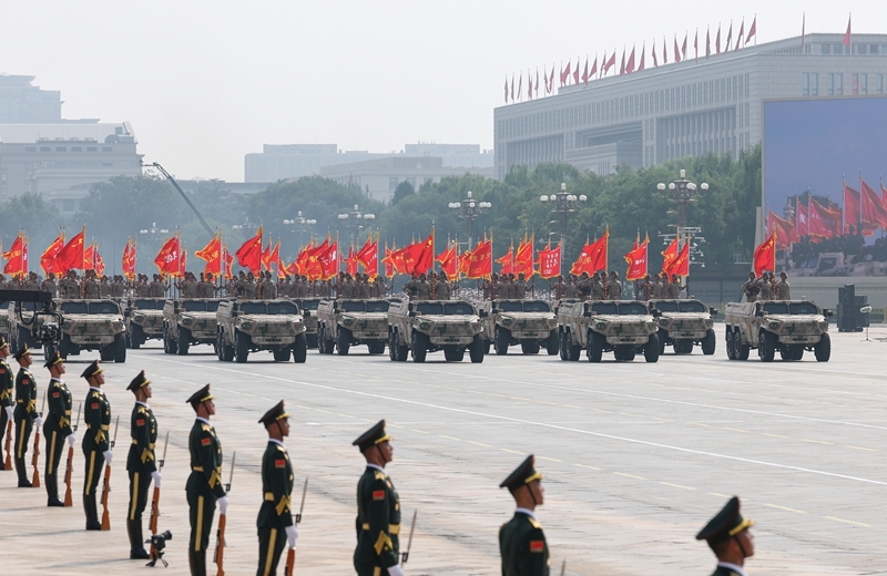 9月3日,紀念中國人民抗日戰(zhàn)爭暨世界反法西斯戰(zhàn)爭勝利80周年大會在北京隆重舉行。這是網絡空間作戰(zhàn)方隊接受檢閱。