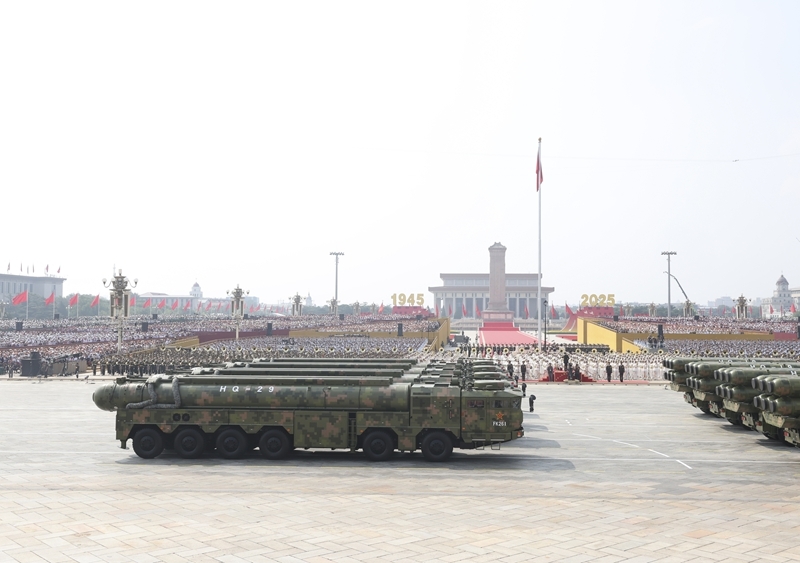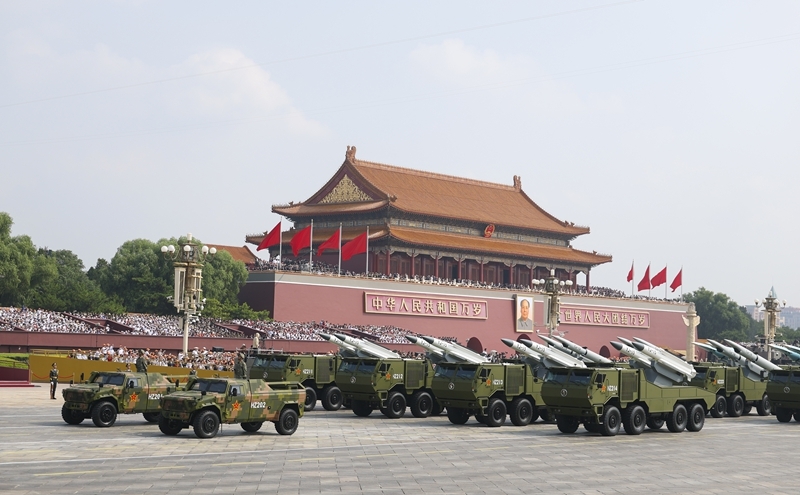 9月3日,紀念中國人民抗日戰(zhàn)爭暨世界反法西斯戰(zhàn)爭勝利80周年大會在北京隆重舉行。這是核導彈第二方隊接受檢閱。
