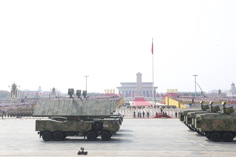 9月3日,紀念中國人民抗日戰(zhàn)爭暨世界反法西斯戰(zhàn)爭勝利80周年大會在北京隆重舉行。這是艦載防空武器方隊接受檢閱。