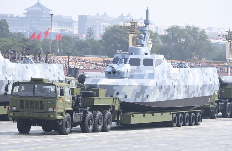 9月3日,紀念中國人民抗日戰(zhàn)爭暨世界反法西斯戰(zhàn)爭勝利80周年大會在北京隆重舉行。這是海上無人作戰(zhàn)方隊通過天安門廣場。