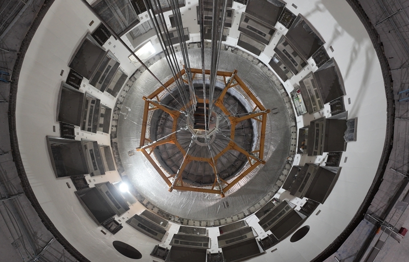 這是10月1日在緊湊型聚變能實驗裝置(BEST)建設(shè)現(xiàn)場拍攝的成功落位安裝的杜瓦底座(無人機(jī)照片)。