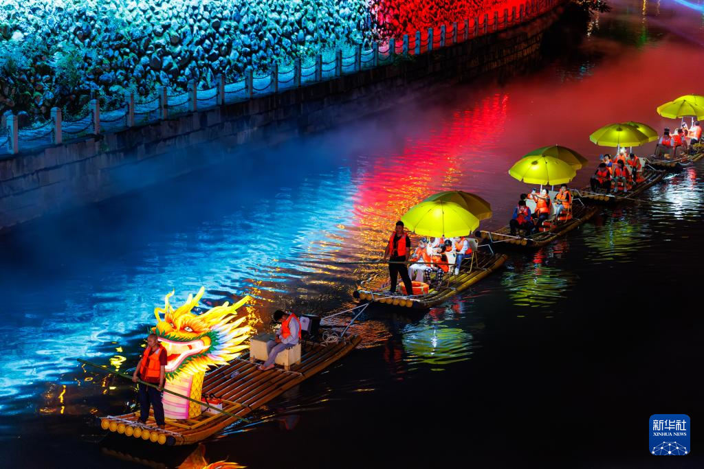 10月6日,游客在福建省長汀縣體驗“夜游汀江”項目。新華社記者 李昊澤 攝