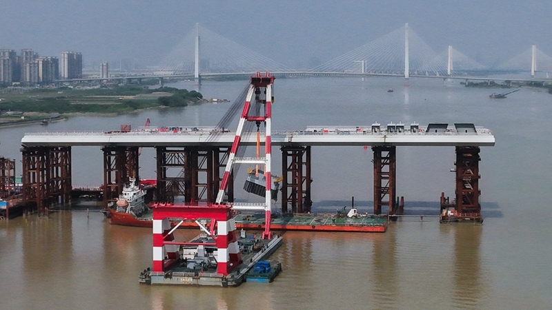 10月10日,由中鐵建大橋局承建的萬(wàn)龍大橋吊裝架設(shè)首節(jié)段主塔。位于廣州南沙區(qū)的萬(wàn)龍大橋跨越珠江口龍穴南水道,全長(zhǎng)5146米,主橋長(zhǎng)1150米,主跨608米,為粵港澳大灣區(qū)又一世界級(jí)橋梁。