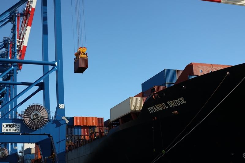 10月19日,在波蘭北部格但斯克港,從中國寧波舟山港出發(fā)的中歐北極快航航線首艘貨船進行裝卸工作。