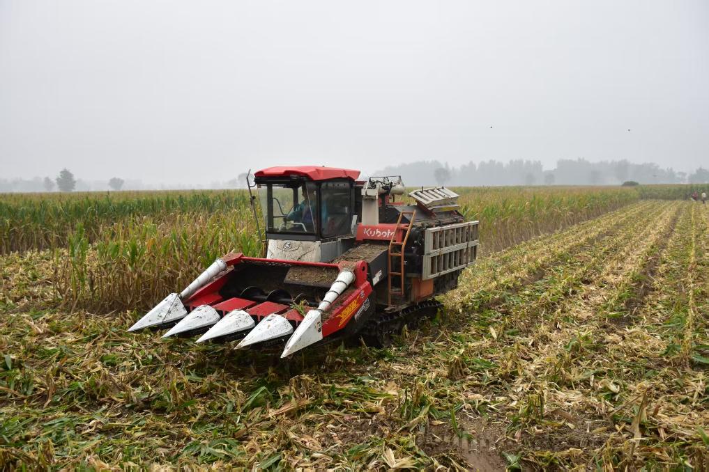 記者近日在山西運(yùn)城市鹽湖區(qū)北相鎮(zhèn)西曲馬村田間看到,玉米已成熟,田埂邊積著淺淺的泥水,一臺(tái)履帶式收割機(jī)正穿梭其間。