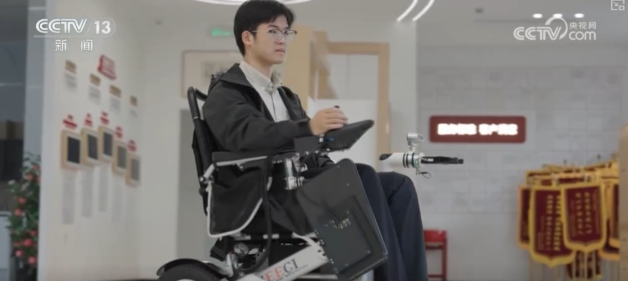 在杭州西湖區(qū),工作人員正在對眼前這款智能輪椅進行技術升級。結合失能老人手腳行動不便的痛點,這款輪椅搭載了深度相機和智能機械臂,通過內(nèi)置的AI算法,使用者只需和平常一樣坐在上面,簡單用語言表達需求,輪椅就可以判斷路線,智能移動。