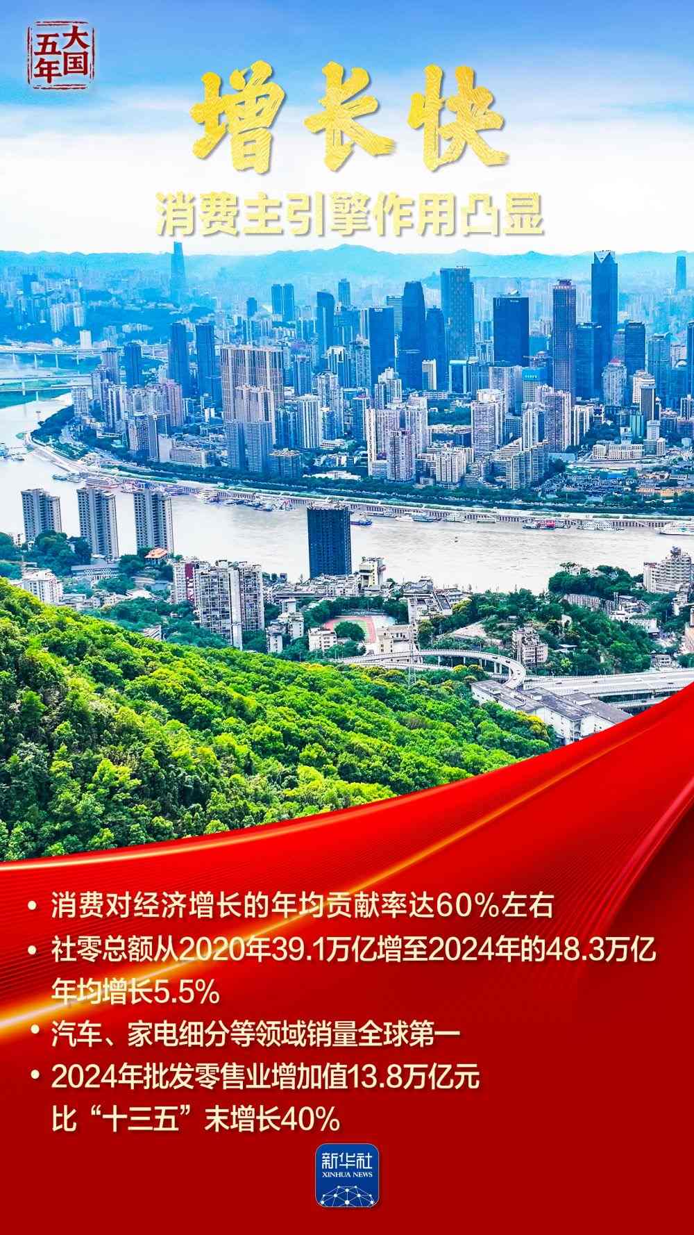 這五年,“智能”“綠色”煥新潮涌,國風(fēng)文創(chuàng)、數(shù)字消費(fèi)勾勒品質(zhì)生活新圖景;服務(wù)消費(fèi)快速增長折射結(jié)構(gòu)優(yōu)化;“中國機(jī)遇”惠及世界,“中國市場”成為共享市場。跟隨海報(bào),共同見證超大規(guī)模市場蘊(yùn)藏的磅礴底氣,感受提振內(nèi)需釋放的澎湃動(dòng)力。
