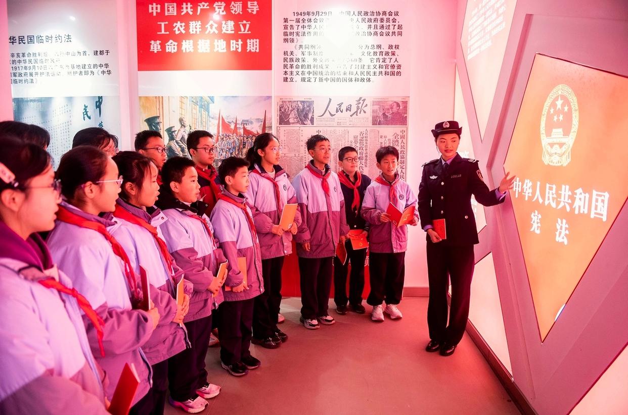 12月3日,安徽省馬鞍山市雨山區(qū)雨山實驗學校,司法干警給學生解讀憲法核心內(nèi)容。(工人日報通訊員 歐宗濤 攝)