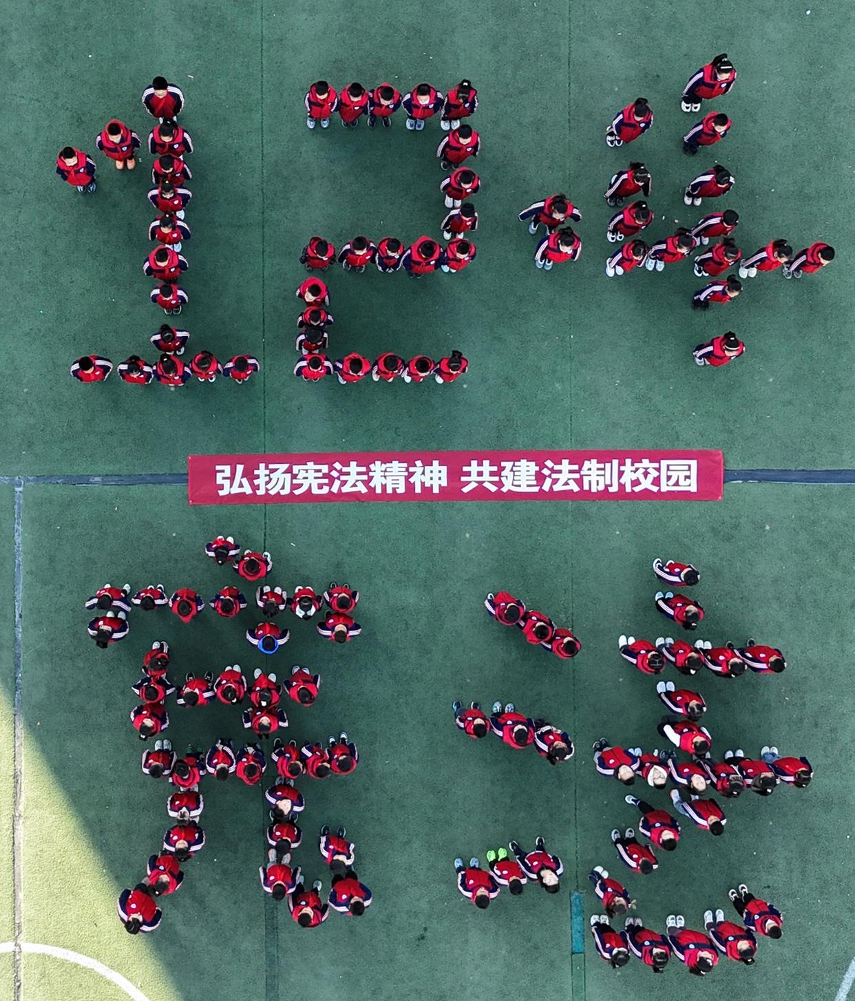 12月4日,在河北省石家莊市欒城區(qū)凌空橋路小學,欒城區(qū)法院的工作人員為學生們普及憲法知識。(工人日報通訊員 李明發(fā) 攝)