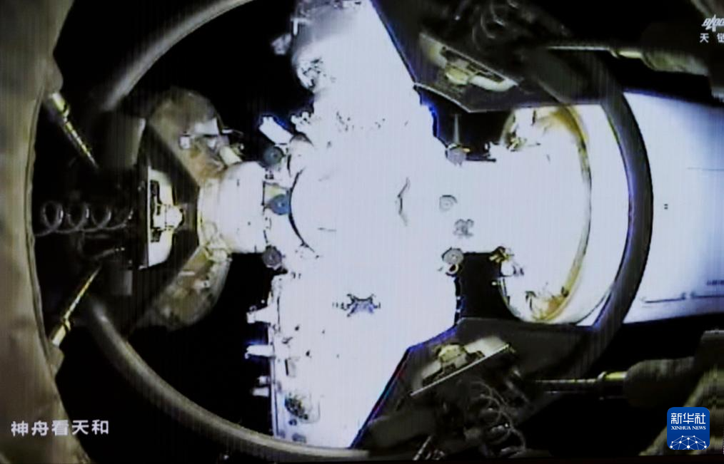 4月24日在北京航天飛行控制中心拍攝的神舟二十號載人飛船成功對接空間站天和核心艙畫面。新華社記者 金立旺 攝