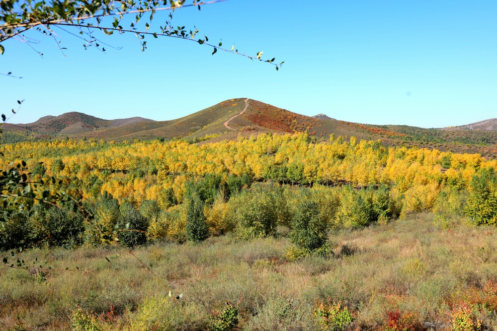 9月26日,金秋時節(jié)的興安盟烏蘭浩特市義勒力特鎮(zhèn)巴彥查干山,迎來一年中最絢麗的時節(jié)。漫山遍野的楓樹、樺樹、灌木以及蒙古栗等樹種,交織成斑斕七彩顏色,在湛藍天空映襯下,構(gòu)成北疆特有的壯美秋景。