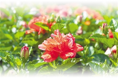 疑若焰生、朝開暮落的朱槿花,在我國古代文學記載中非常豐富,被賦予了深厚的人文內涵?!罢螣熼L暖無霜雪,槿艷繁花滿樹紅。每嘆芳菲四時厭,不知開落有春風。”唐代詩人李紳就在詩中贊嘆,“無霜雪”環(huán)境下生長的朱槿花四季常美。
