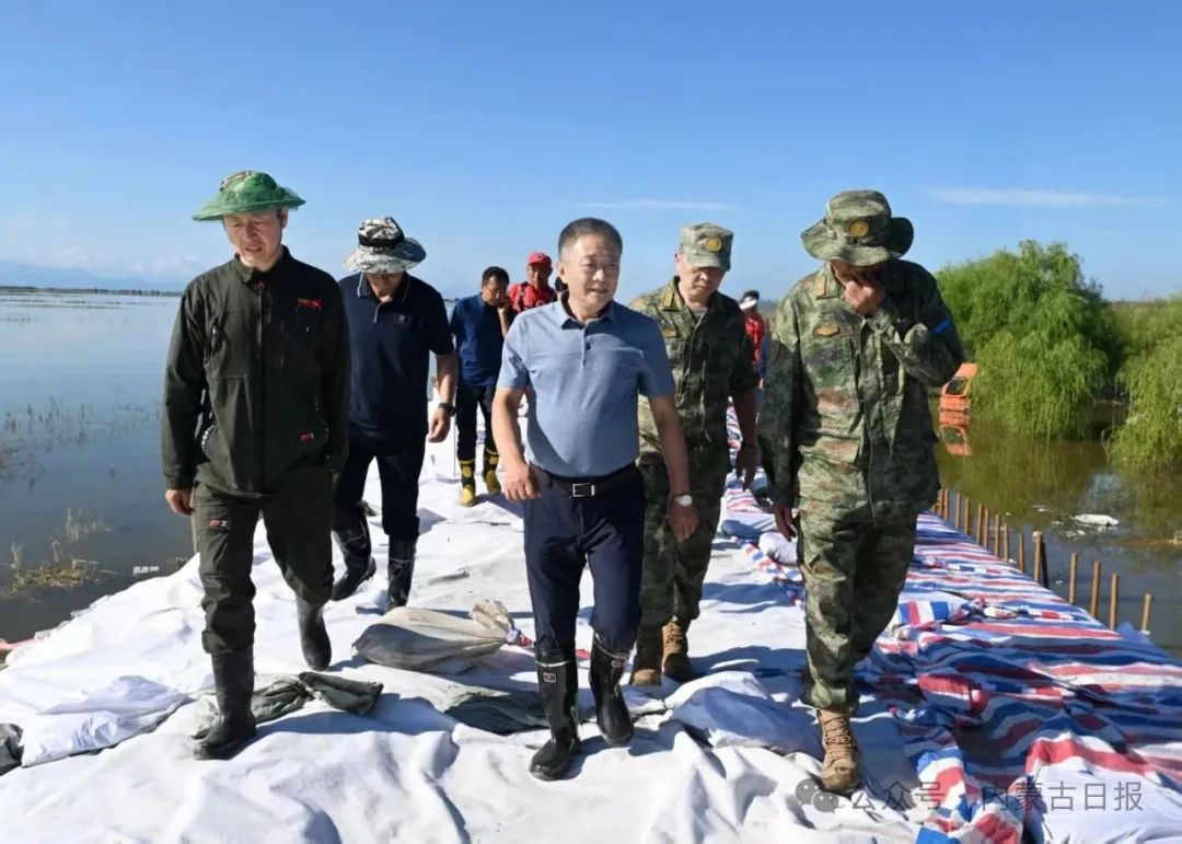 8月19日,自治區(qū)黨委書記孫紹騁深入土默特右旗,現(xiàn)場檢查指導(dǎo)防汛救災(zāi)工作,看望搶險救災(zāi)和巡堤值守一線人員?! ?/p>