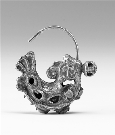 在遼代的文物遺存中,摩羯圖像廣泛見諸于各類器物上,從隨身佩戴的飾件到案頭陳設(shè)的器皿,從服飾上的精美紋樣到與宗教相關(guān)的器物,有摩羯形金耳墜、摩羯紋銀盤、摩羯紋銅鏡、摩羯紋鎏金繁花銀盞托、摩羯形白瓷燈、摩羯形注壺、摩羯紋緙絲草帽等。這些遍布于遼代各類器物上的摩羯形象,并非本土原生的文化符號,其背后承載著跨越地域的各民族交往交流交融和文化融通互鑒的歷程。
