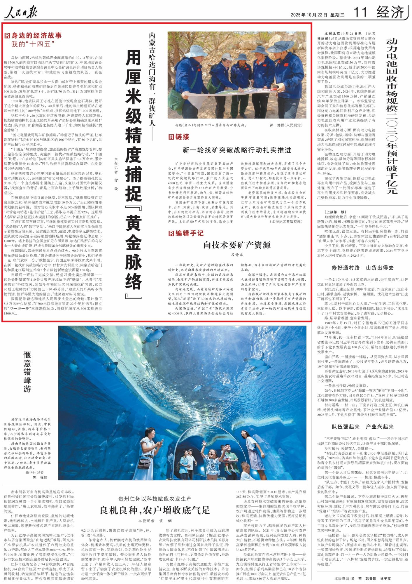 2025年10月22日,《人民日報(bào)》第11版刊發(fā)題為《內(nèi)蒙古哈達(dá)門溝有一群找礦人——用厘米級精度捕捉“黃金脈絡(luò)”》的文章,報(bào)道了中國地質(zhì)調(diào)查局楊彪團(tuán)隊(duì)在內(nèi)蒙古哈達(dá)門溝礦區(qū)奮戰(zhàn)3年,依托前輩基礎(chǔ),累計(jì)探明黃金百余噸,“十四五”期間新增10余噸,鉆孔見礦率超行業(yè)平均。